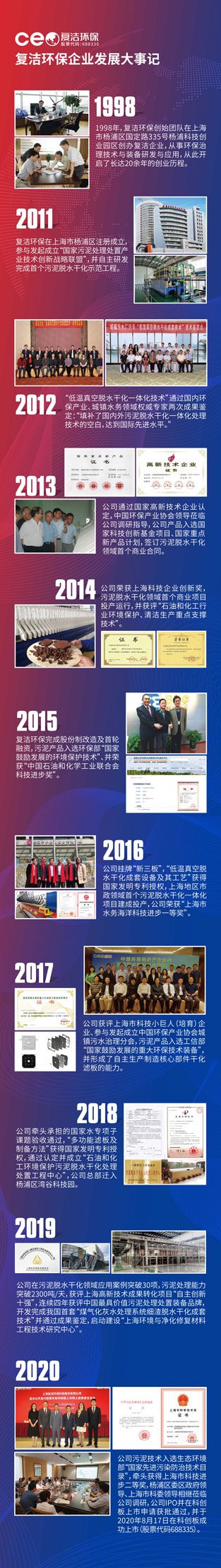 2011年11月,上海复洁环保科技有限公司(简称“复洁环保”)在上海市杨浦区注册成立,并于当年自主研发完成首个污泥脱水干化一体化技术的示范工程。