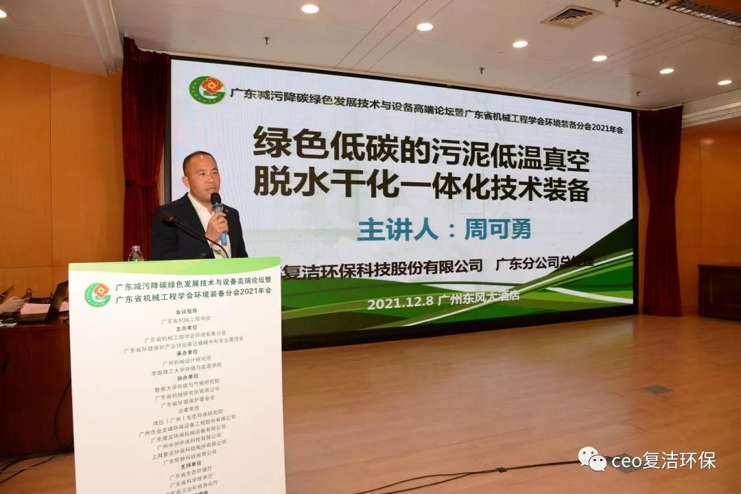 会议同期,复洁环保广东分公司总经理周可勇以“绿色低碳的低温真空脱水干化一体化技术装备在污水处理厂污泥处理中的应用”为题作了主题报告,获得了与会代表的积极肯定。