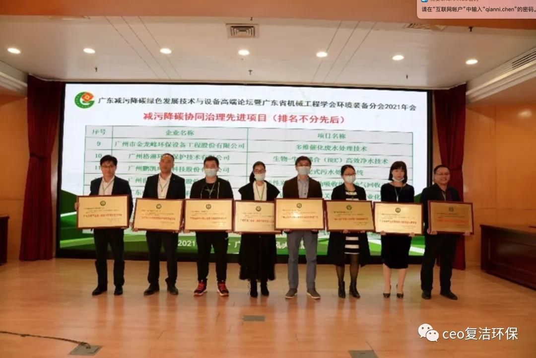 广东省环保集团有限公司党委副书记、总经理黄文,广东省机械工程学会常务副理事长兼秘书长刘奕华,广东省广业检验检测集团有限公司党委书记、董事长李昱,广东省环境保护产业协会常务副会长马作同,广东省生态环境厅宣教科技处二级调研员周雪峰,广东省工业和信息化厅工业节能与综合利用处副处长刘辉,广东省机械工程学会环境装备分会理事长、华南理工大学环境与能源学院院长叶代启,广东省机械工程学会环境装备分会常务副理事长兼秘书长潘永刚,世界科学院院士、暨南大学环境与气候研究院名誉院长刘绍臣等领导嘉宾,以及来自广东省各高校、科研院所、企事业单位代表共220多人参加了本次现场大会,全程网络直播有近2000人在线观看。上海复洁环保科技股份有限公司广东分公司总经理周可勇受邀作为公司代表出席并在大会现场进行了精彩的技术分享。