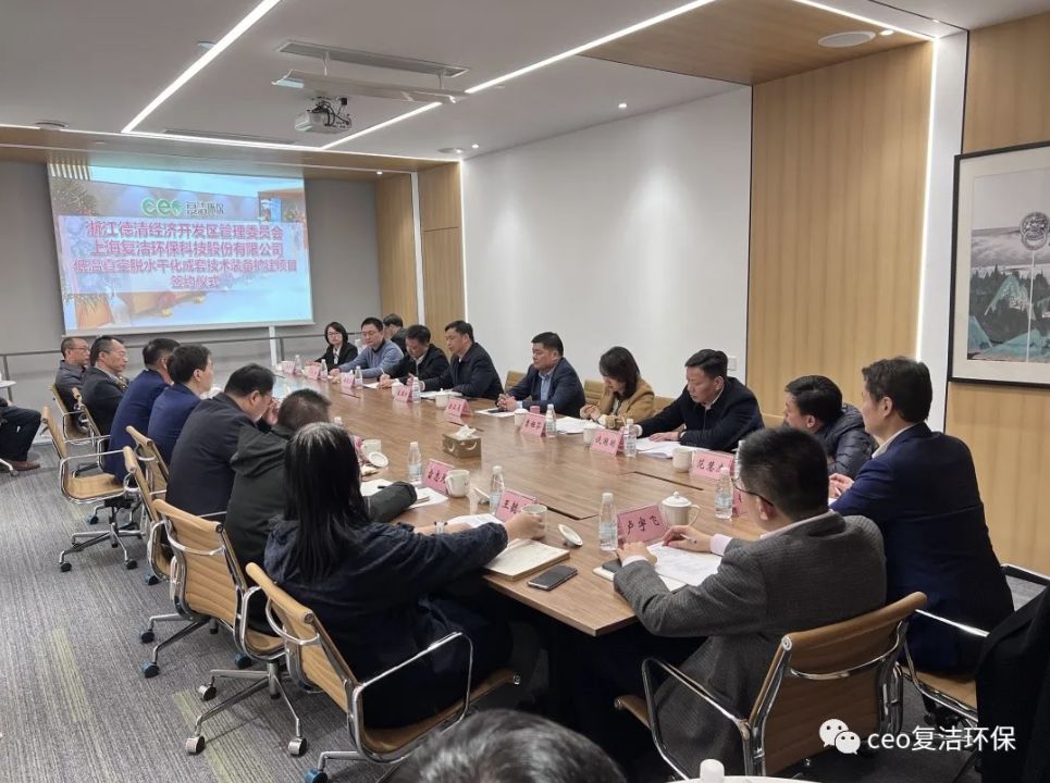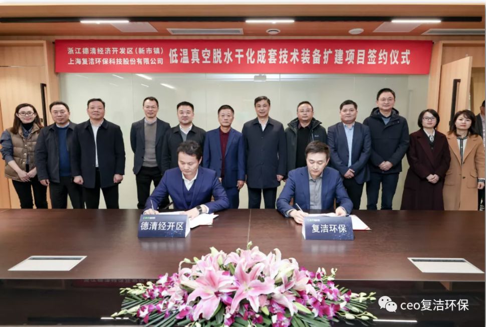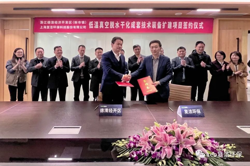 2022年1月12日下午,浙江德清经济开发区管理委员会与上海复洁环保科技股份有限公司“低温真空脱水干化成套技术装备扩建项目”签约仪式在复洁环保上海总部隆重举行。