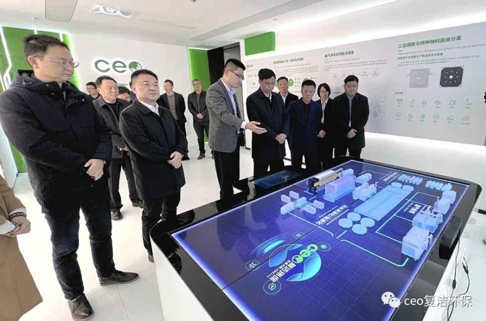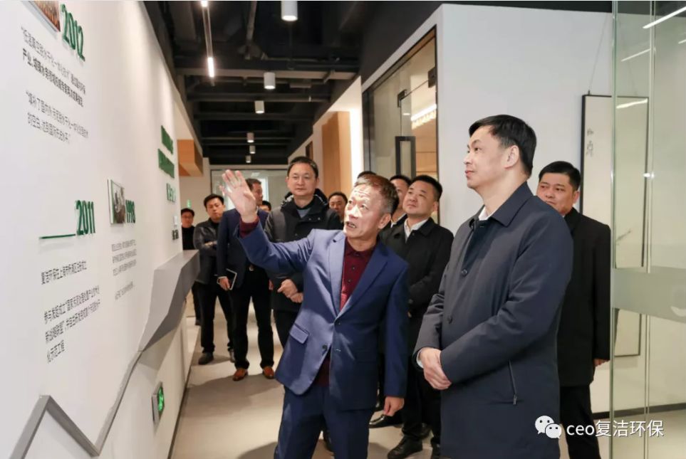 在复洁环保董事长黄文俊及公司管理团队的陪同下,德清县委敖煜新书记等领导一行参观了复洁环保上海总部,详细了解了公司的发展历史、技术装备、创新研发、业务布局等主要情况,对公司取得的成绩给予了充分肯定。