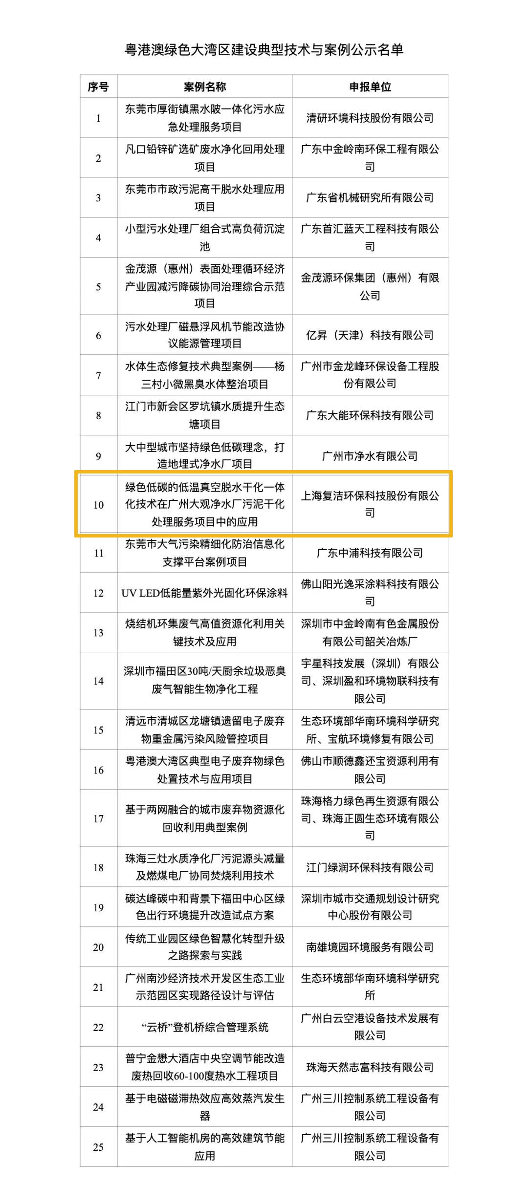 绿色低碳的低温真空脱水干化一体化技术在广州大观净水厂污泥干化处理服务项目中的应用