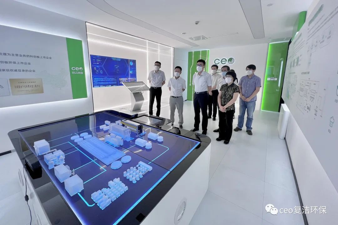 调研座谈后,黄文俊董事长陪同朱石清副局长等各位领导参观了复洁环保展示厅及节能低碳装备智慧运维平台,进一步了解了企业发展历程、业务领域、创新方向、核心技术与典型案例等情况,各位领导给予了充分肯定。