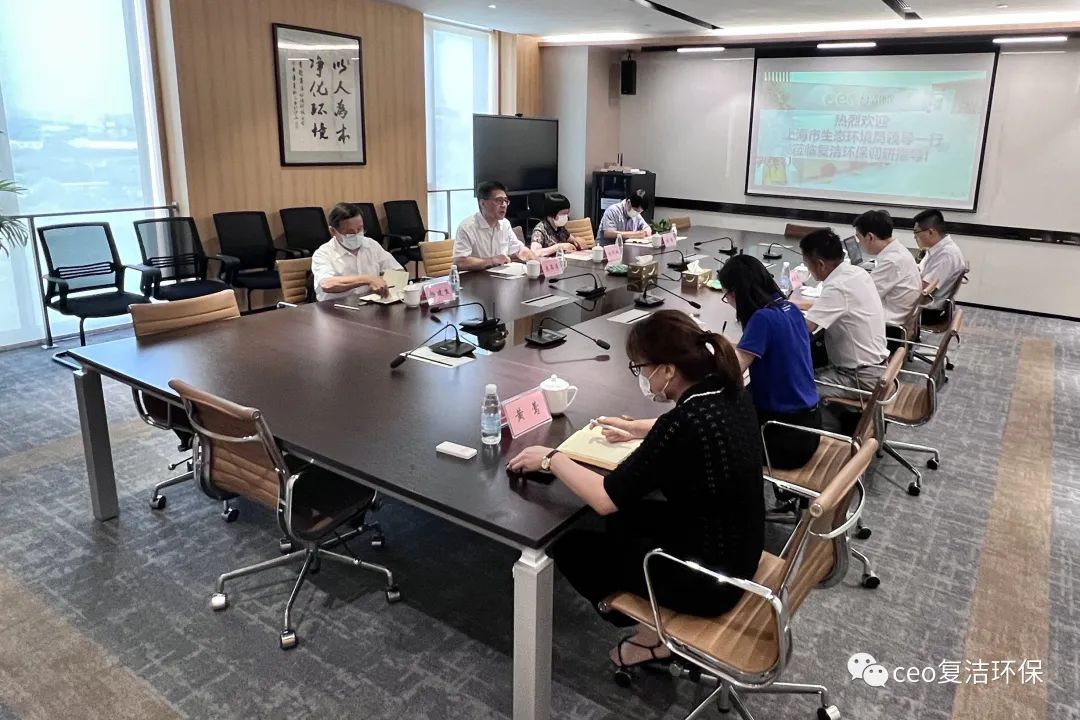 2022年8月11日下午,上海市生态环境局党组成员、副局长、一级巡视员朱石清带队莅临上海复洁环保科技股份有限公司走访调研,市生态环境局水生态环境处处长刘代玲、水处一级主任科员蒋明、上海市环境保护产业协会秘书长杨建生等陪同调研。上海复洁环保科技股份有限公司董事长黄文俊,总裁曲献伟,副总裁、董事会秘书李文静,副总裁、研发中心主任卢宇飞,监事、总裁办副主任黄莺等参加调研座谈。
