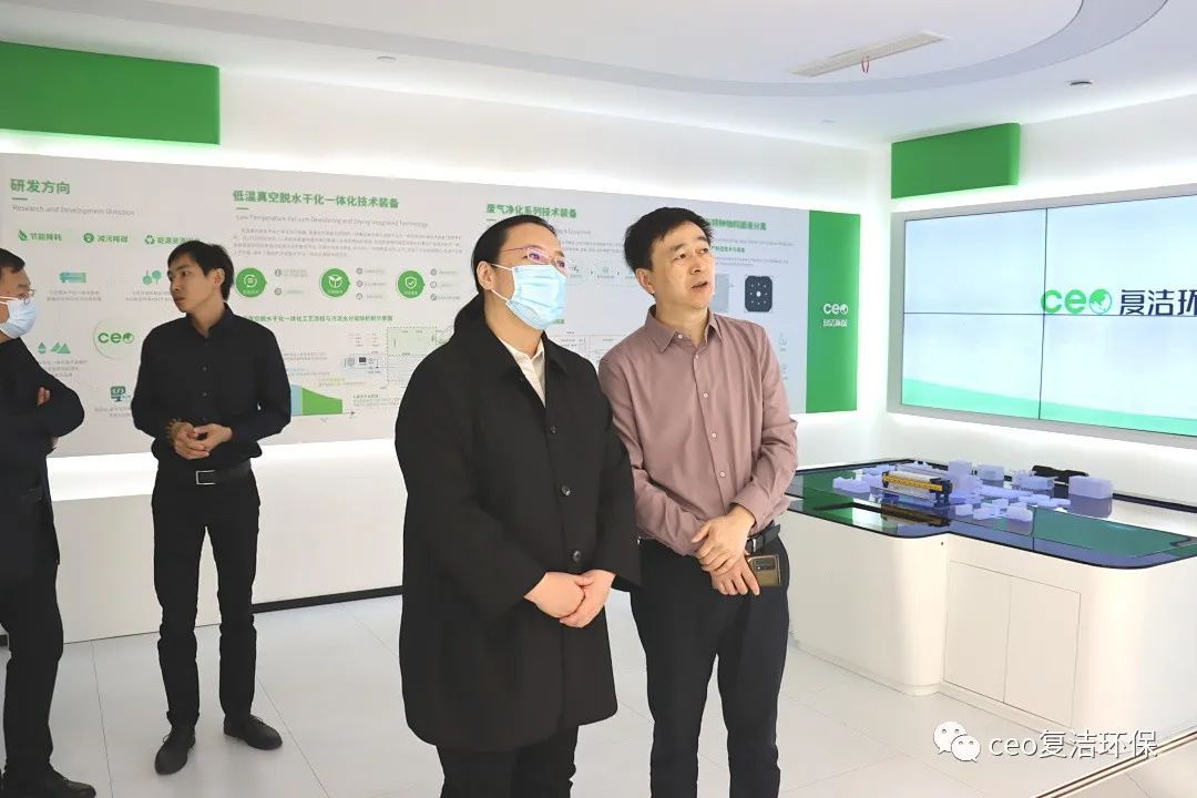 10月14日上午,沈阳市科技局副局长孙晓慧,财联社等领导一行莅临复洁环保调研交流,公司总裁曲献伟等相关人员陪同参观交流。