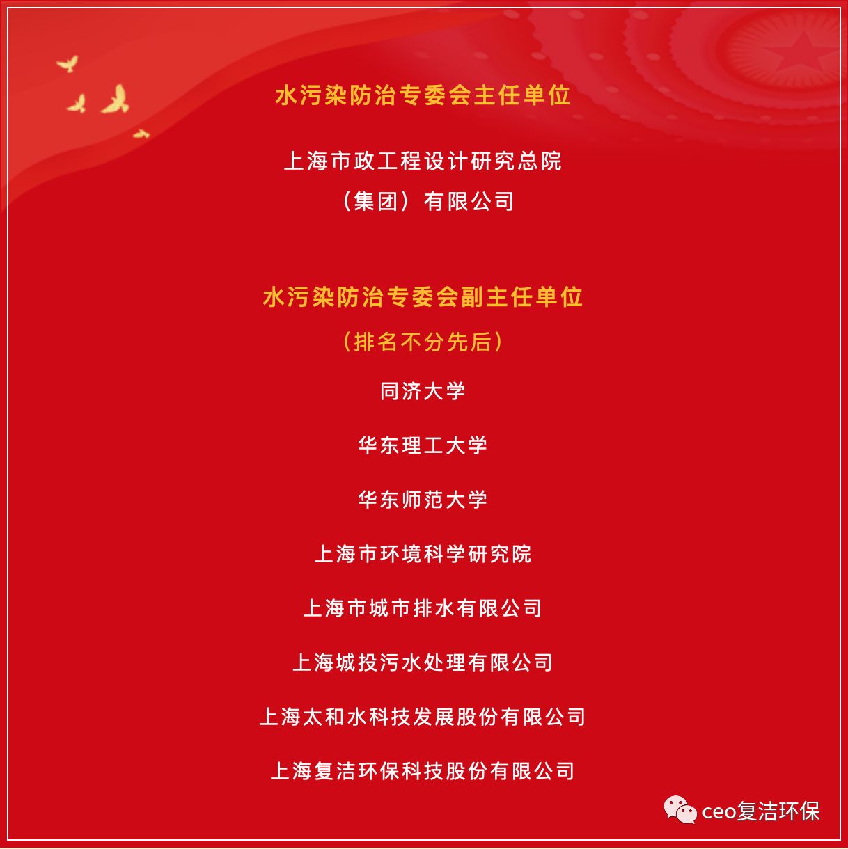 经各成员单位的选举表决,由上海市政总院担任水污染防治专委会的主任单位,同济大学、华东理工大学、华东师范大学、上海市环境科学研究院、上海市城市排水有限公司、上海城投污水处理有限公司、上海太和水科技发展股份有限公司、上海复洁环保科技股份有限公司等8家单位为副主任单位。全国工程勘察设计大师、上海市政总院总工程师张辰任专委会主任,上海市政总院总工程师助理陈嫣任专委会秘书长。![]()