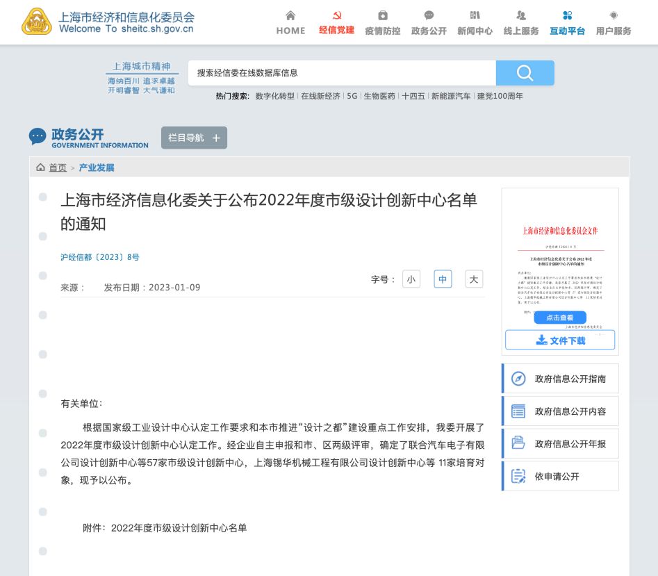企业设计创新中心是产业领域设计创新活动的重要载体,依托设计创新中心,企业能够充分发挥设计创新的驱动能力和赋能效应。根据工业和信息化部《国家级工业设计中心认定管理办法(试行)》(工信部产业〔2012〕422号)要求和上海“设计之都”建设工作部署,为进一步培育本市设计产业市场主体,提升设计服务供给水平,突出设计创新的赋能和驱动作用,2022年9月起,上海市经济和信息化委员会组织开展了2022年度市级设计创新中心认定工作。