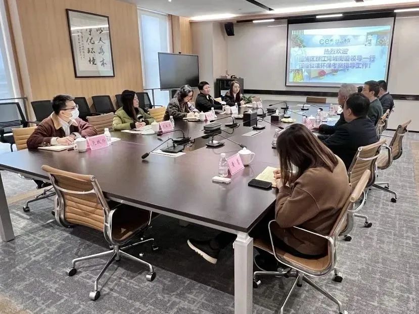 2023年2月2日上午,上海市杨浦区新江湾城街道党工委书记、人大工委主任黄秀娟,人大工委副主任刘轶蓉等领导莅临复洁环保公司总部走访调研,就企业经营与发展情况进行交流座谈,听取企业需求及建议。复洁环保董事长黄文俊,总裁曲献伟,党支部书记吴岩,副总裁、董事会秘书李文静,副总裁、研发中心主任卢宇飞,总裁办公室副主任黄莺接待了街道党工委办事处领导一行。