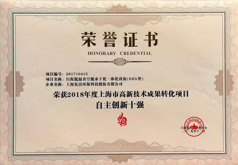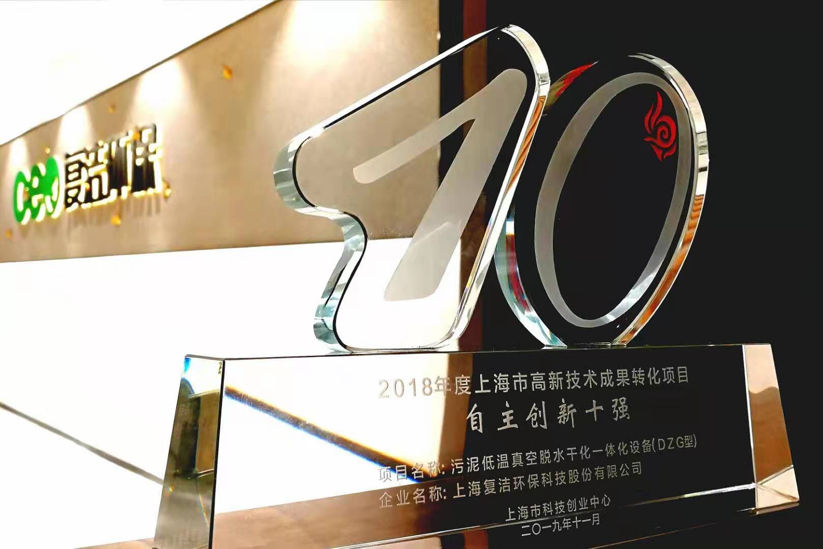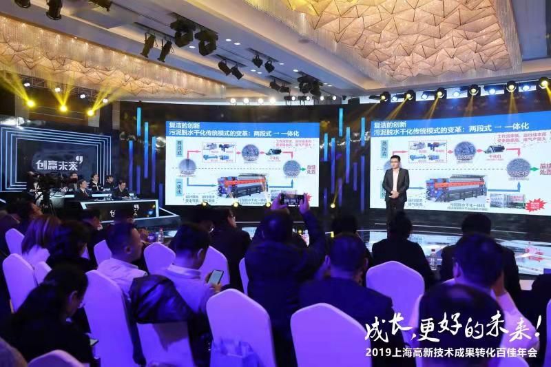 上海复洁环保科技股份有限公司承担的“污泥低温真空脱水干化一体化设备(DZG型)”项目,经过层层指标筛选、专家评议、网络公示等程序,从全市2400多个项目中脱颖而出,荣获2018年度上海市高转项目“自主创新十强”荣誉称号,这也是该项目继去年被评为高转项目年度“百佳”之后再上台阶、再获殊荣。复洁环保研发中心主任卢宇飞博士代表公司上台领奖,并围绕公司在污泥处理领域持续开展科技创新与成果转化的发展历程进行了主题分享。