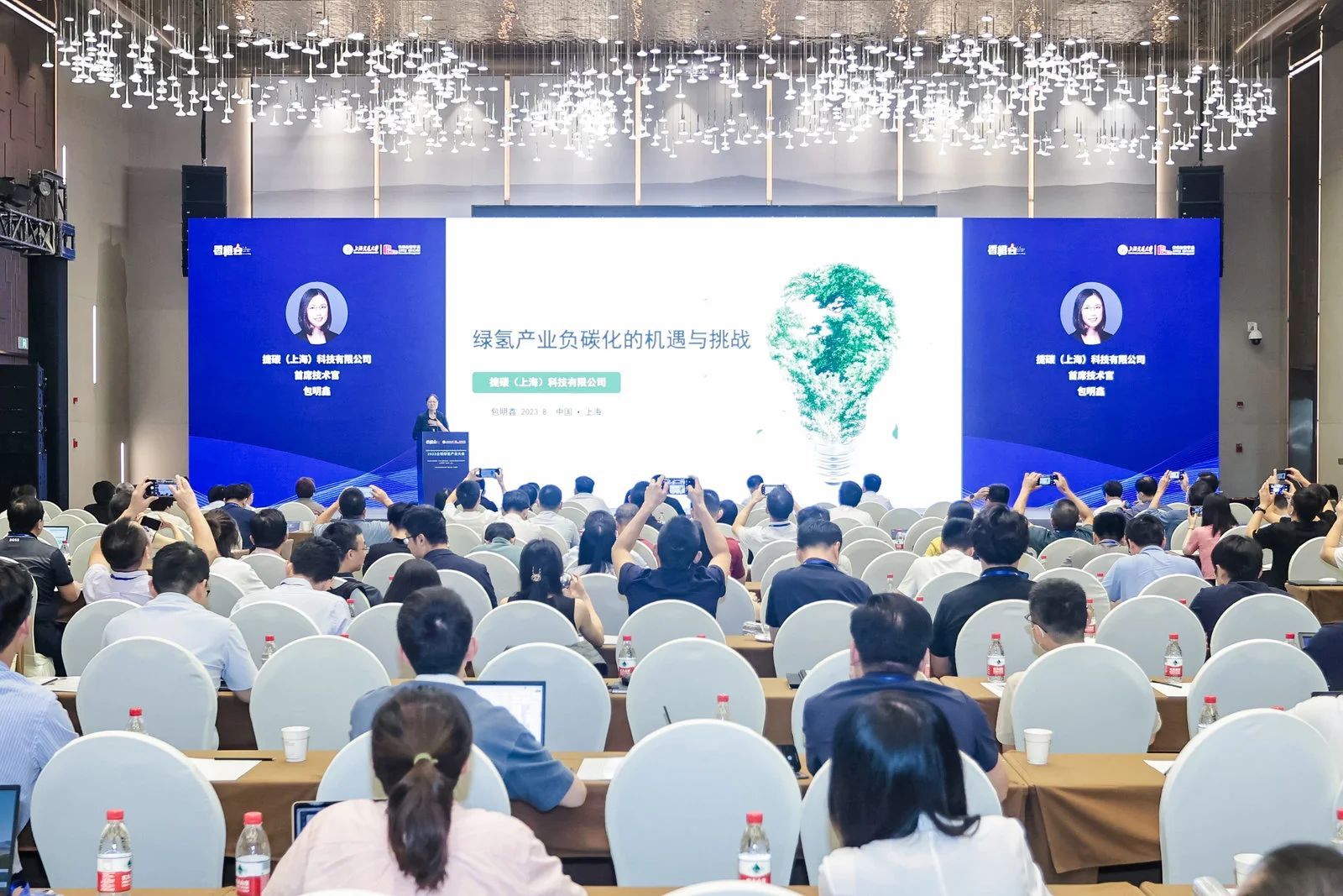 2023年8月22~23日,2023全球绿氢产业大会在上海国际汽车城瑞立大酒店顺利举行。本次大会邀请全球绿氢行业的龙头企业,围绕全球绿氢行业发展,未来市场供需以及技术路线等议题展开分享和讨论,为氢能大规模应用做准备。23日,复洁环保控股子公司捷碳科技有限公司,首席技术官包明鑫在会上发表了题为"绿氢产业负碳化的机遇与挑战"的专题演讲。