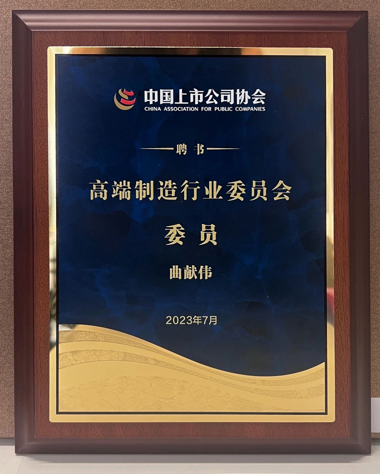 会上,高端制造行业委员会为各单位委员颁发聘书。上海复洁环保科技股份有限公司董事、总裁曲献伟先生受聘成为委员会委员。