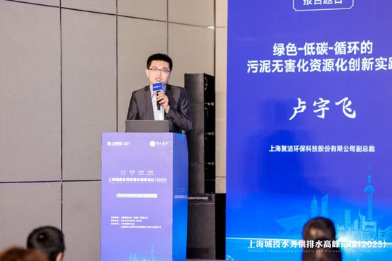 10日下午至11日上午,大会同步举办供水分论坛与排水分论坛。复洁环保副总裁卢宇飞博士在排水分论坛进行了题为“绿色-低碳-循环的污泥无害化资源化创新实践”的主题分享,从创新与突破、亮点与特色、实践与应用等角度全面介绍了公司在污泥脱水干化、臭气净化、污水能源化领域的创新实践,并面向污水厂定位转型愿景简介了未来创新发展规划。