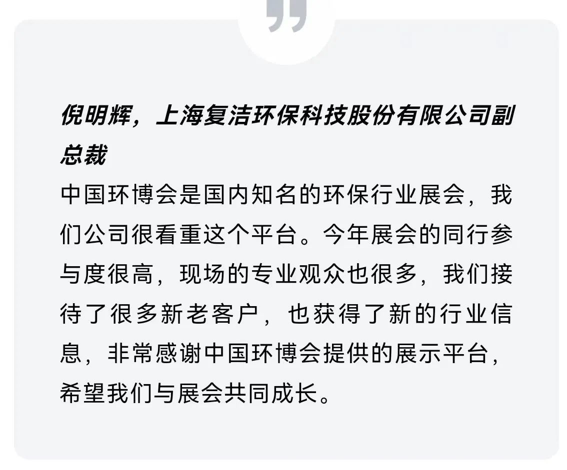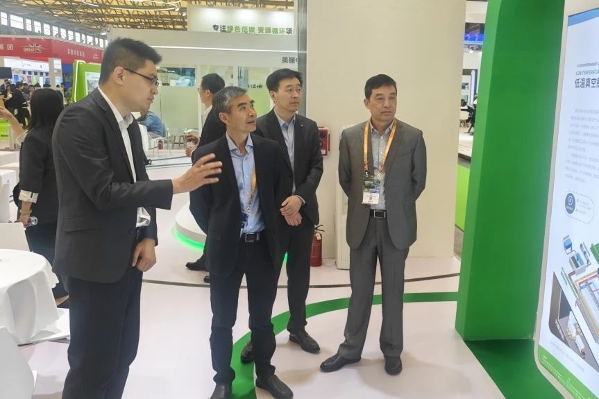 展会期间,上海市生态环境局党组书记、副局长唐家富,局长晏波,副局长柏国强,二级巡视员屈计宁等领导,在上海市环境保护产业协会苏国栋会长等协会领导的陪同下,先后莅临复洁环保展位参观,详细了解了公司在节能低碳高端装备、双碳综合服务、清洁能源先进技术等领域的业务技术布局及最新应用与研究进展,对公司在创新驱动绿色低碳发展、积极培育新质生产力方面取得的成绩给予了积极肯定。