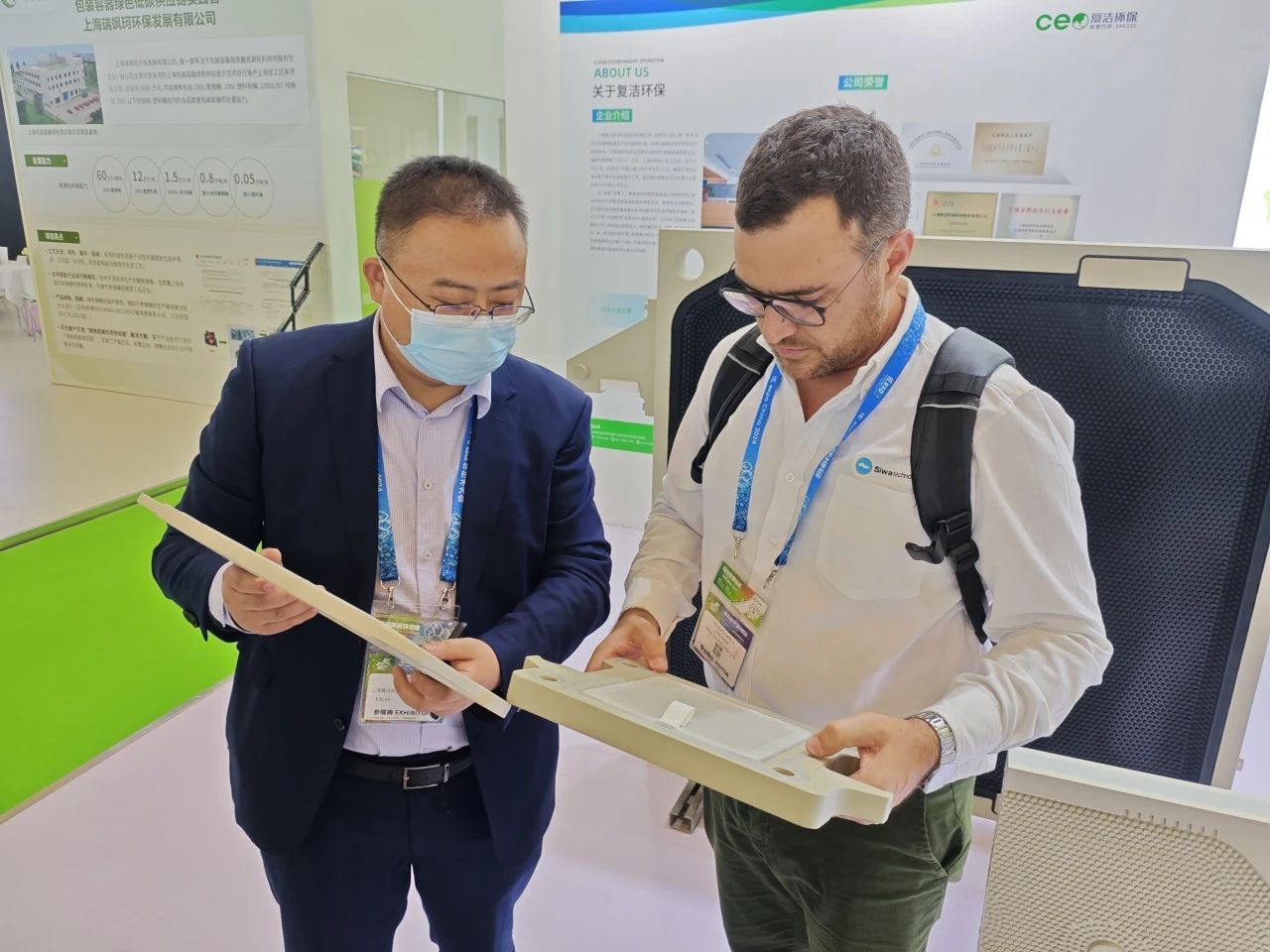 上海复洁环保科技股份有限公司在董事长黄文俊、总裁曲献伟等领导带领下,精彩亮相E3馆(上海馆)C43展位,与全球各界环保人士共襄盛会。