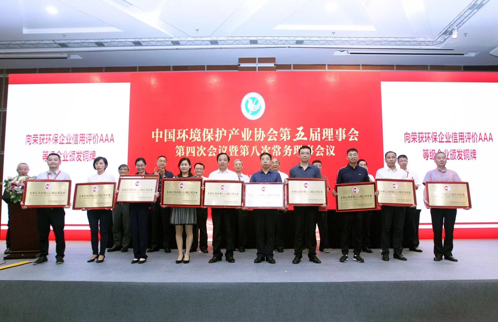 中国环境保护产业协会会长樊元生发表了讲话。会上向荣获行业信用评价AAA等级的企业颁发了铜牌。