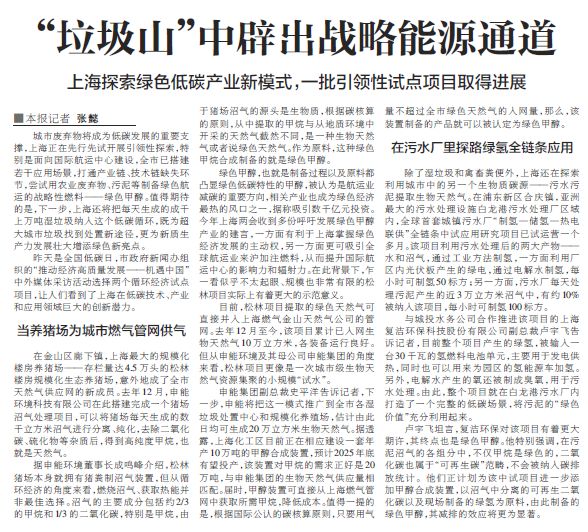 城市废弃物将成为低碳发展的重要支撑,上海正在先行先试开展引领性探索,特别是面向国际航运中心建设,全市已搭建若干应用场景,打通产业链、技术链缺失环节,尝试用农业废弃物、污泥等制备绿色航运的战略性燃料——绿色甲醇。值得期待的是,下一步,上海还将把每天生成的成千上万吨湿垃圾纳入这个低碳循环,既为超大城市垃圾找到处置新途径,更为新质生产力发展壮大增添绿色新亮点。