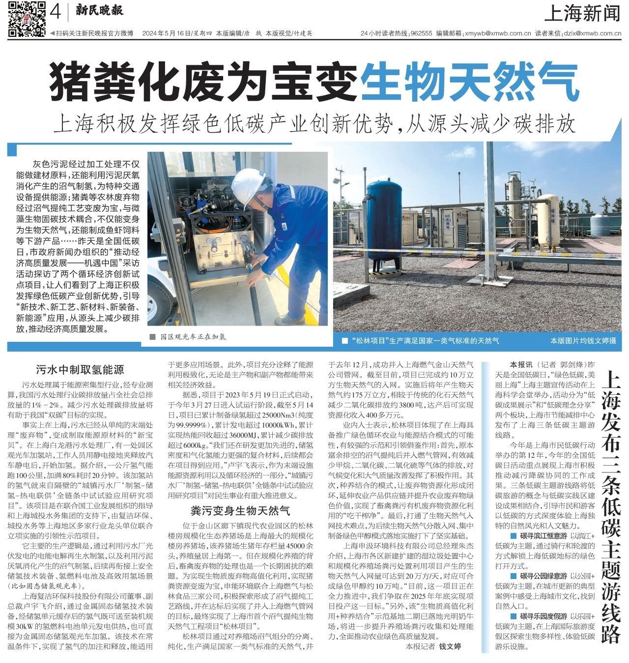 灰色污泥经过加工处理不仅能做建材原料,还能利用污泥厌氧消化产生的沼气制氢,为特种交通设备提供能源;猪粪等农林废弃物经过沼气提纯工艺变废为宝,与微藻生物固碳技术耦合,不仅能变身为生物天然气,还能制成鱼虾饲料等下游产品……昨天是全国低碳日,市政府新闻办组织的“推动经济高质量发展——机遇中国”采访活动探访了两个循环经济创新试点项目,让人们看到了上海正积极发挥绿色低碳产业创新优势,引导“新技术、新工艺、新材料、新装备、新能源”应用,从源头上减少碳排放,推动经济高质量发展。