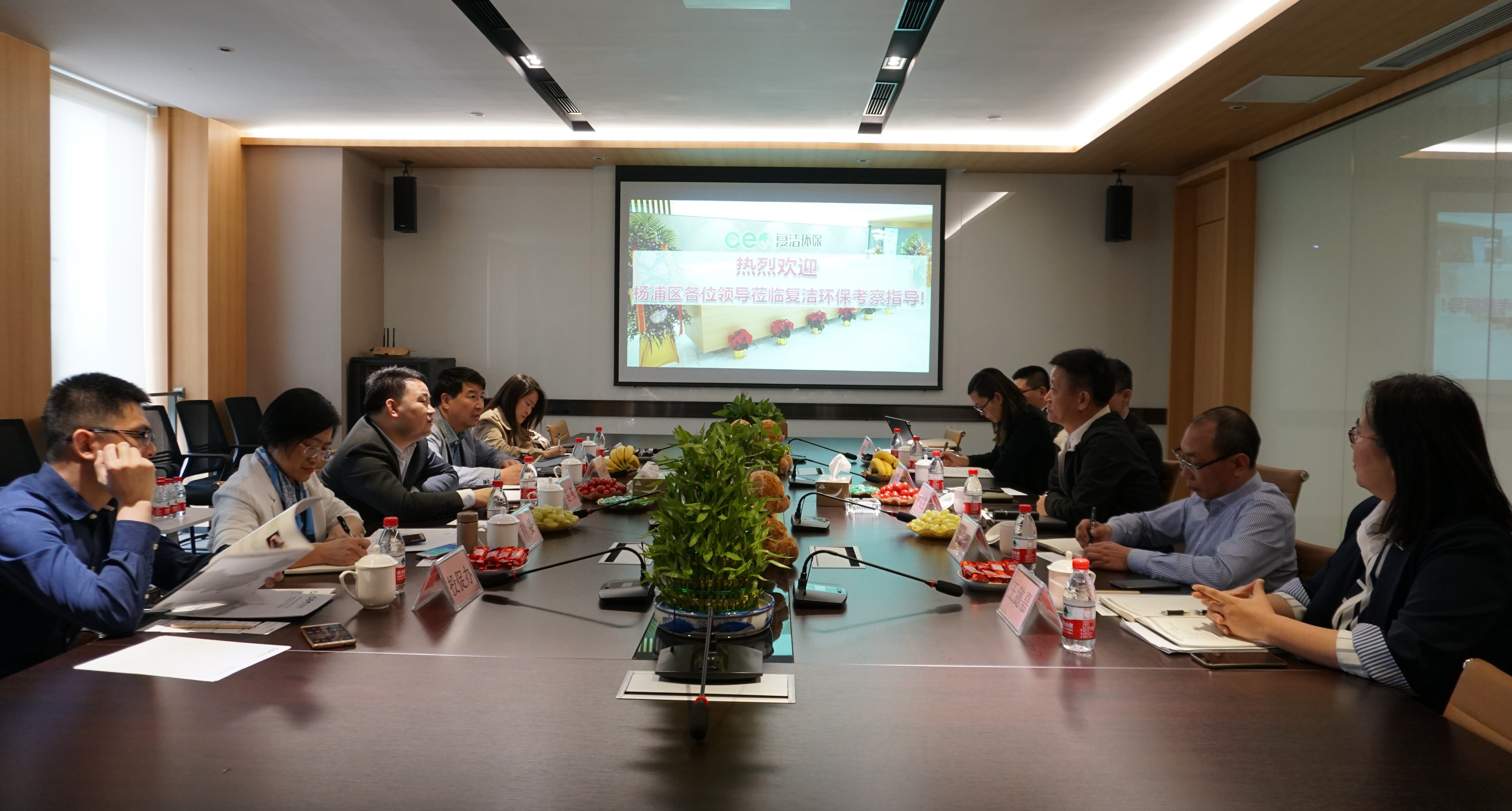 2019年5月7日,上海市杨浦区赵亮副区长一行莅临复洁环保公司总部开展走访调研,就企业经营情况与发展规划进行了交流座谈,听取企业需求及建议,并参观了公司自主研发的环保装备智慧运维服务管理系统。杨浦区商务委、区科委、金融办、投促办等主要领导陪同调研。复洁环保黄文俊董事长率公司管理团队接待了区领导一行。