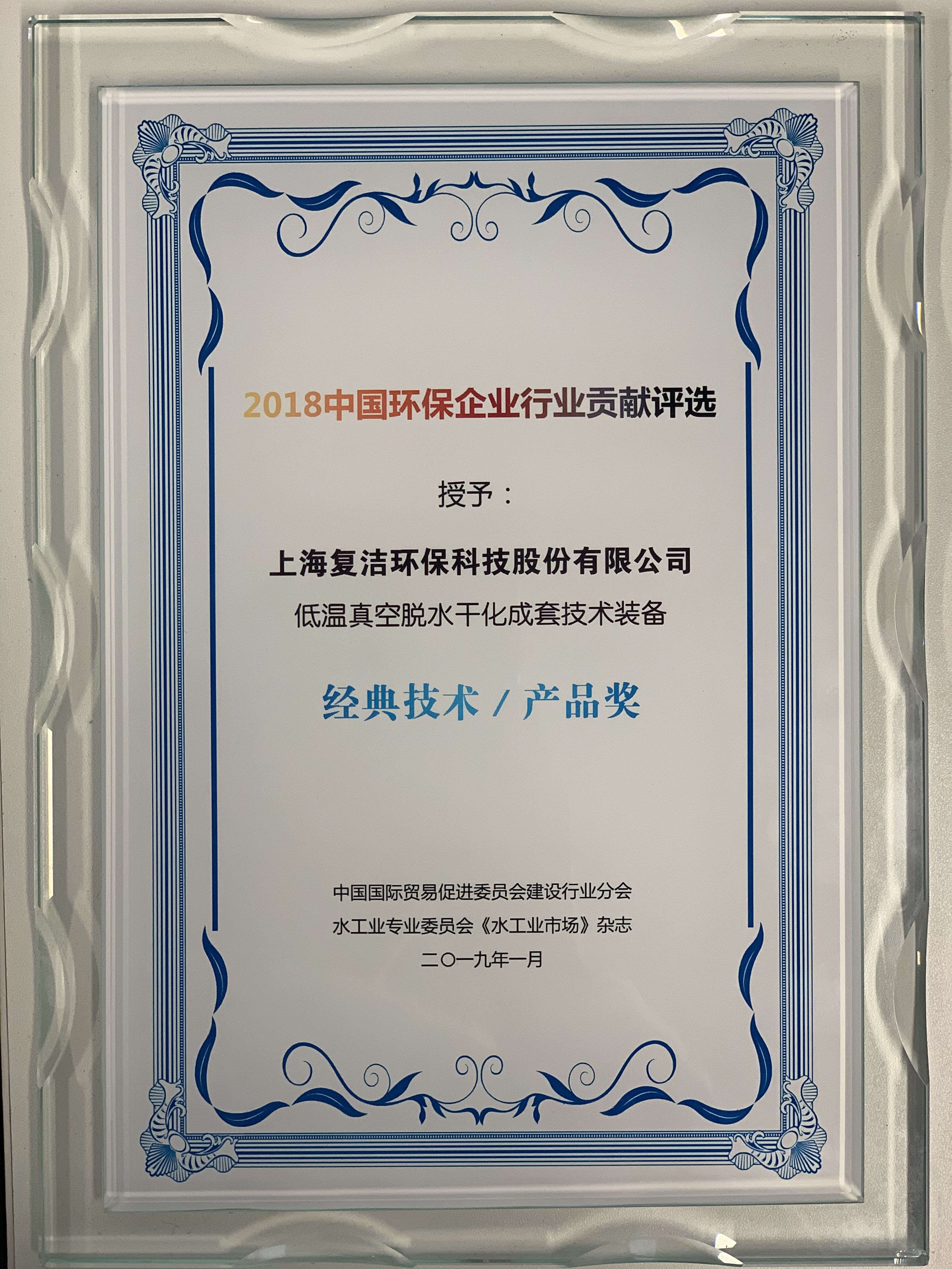 复洁环保参会代表出席“2018中国环保企业行业贡献评选颁奖大会”盛典。复洁环保“低温真空脱水干化成套技术装备”荣获“经典技术/产品奖”殊荣!