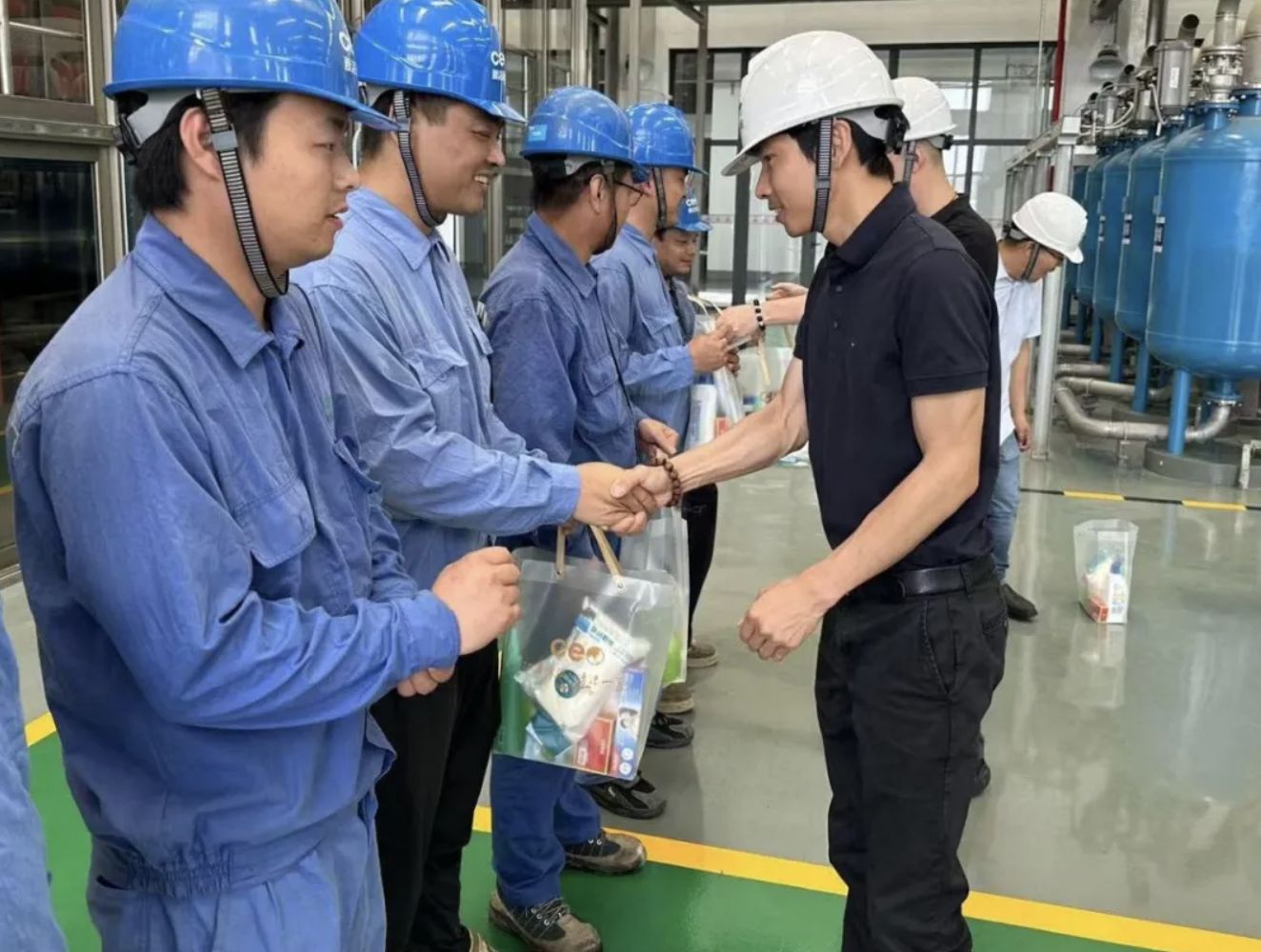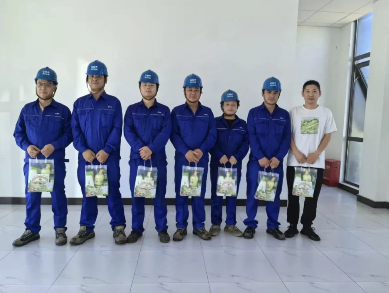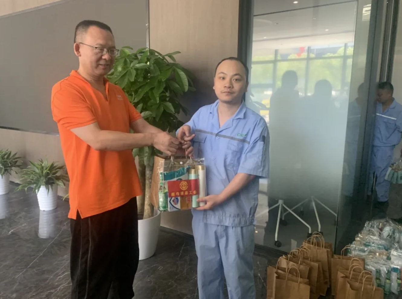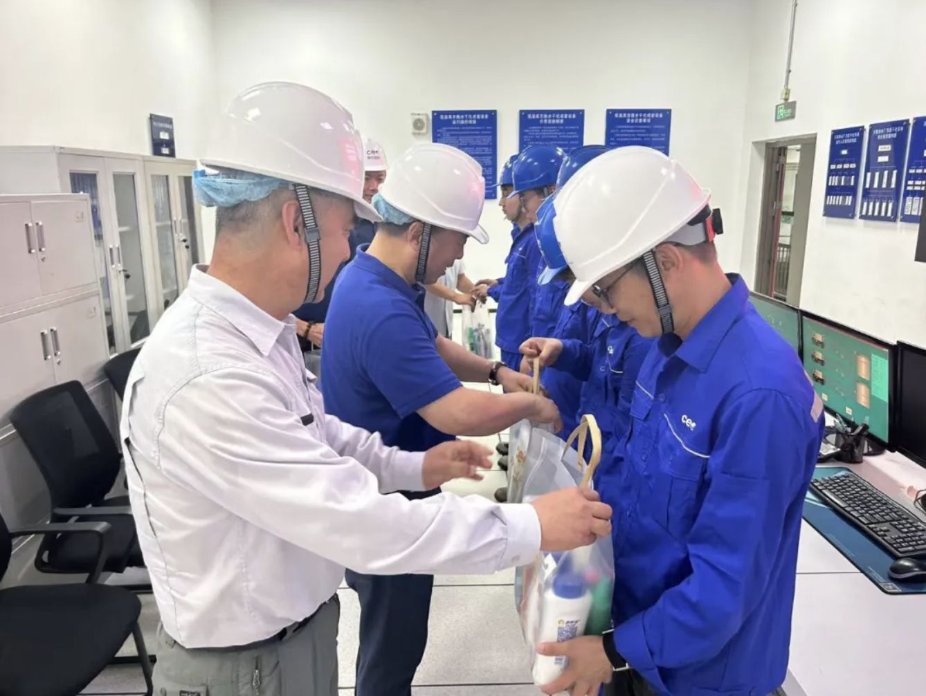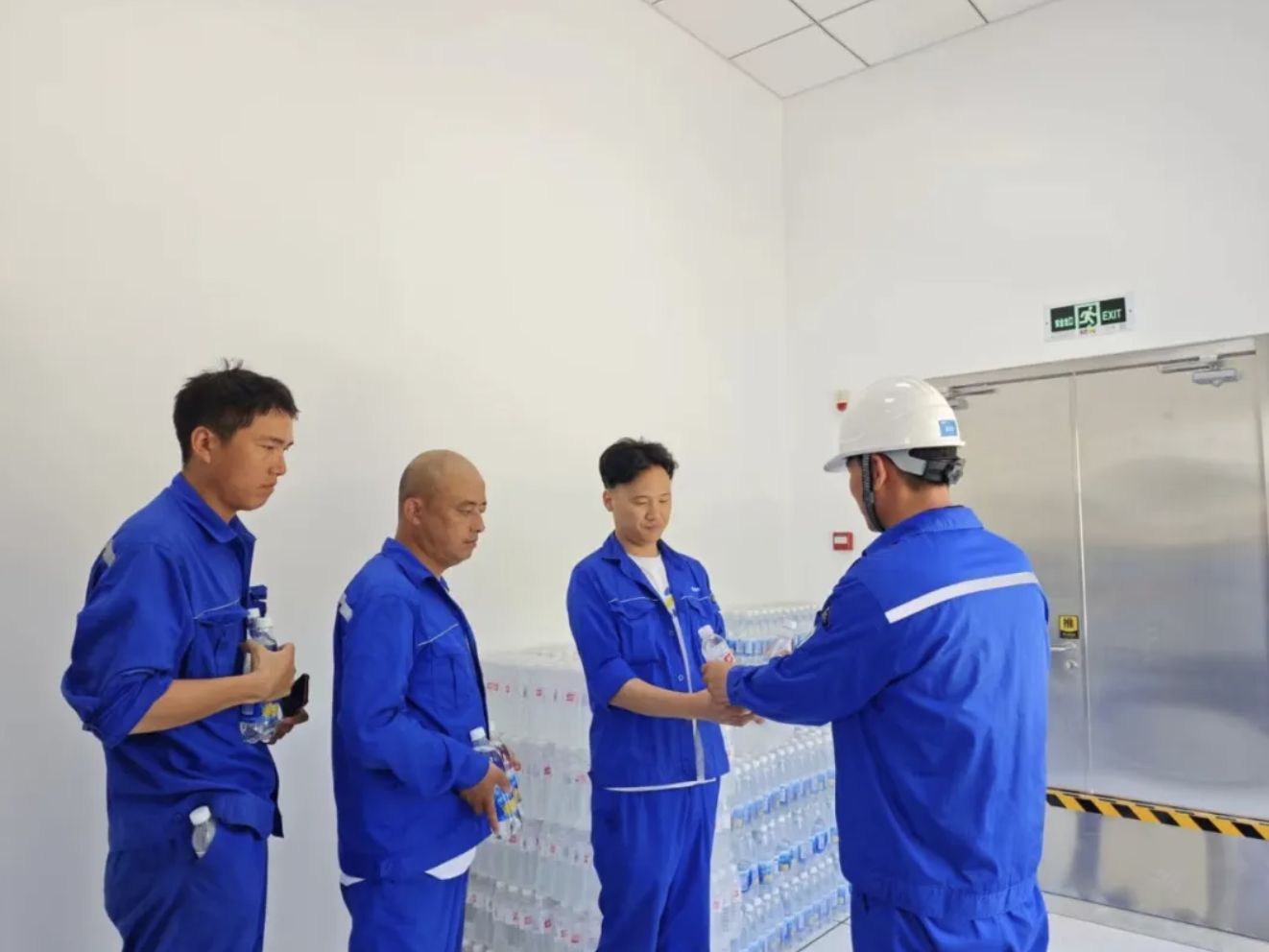 公司各级管理人员纷纷来到项目及生产现场为他们送去防暑降温套装。