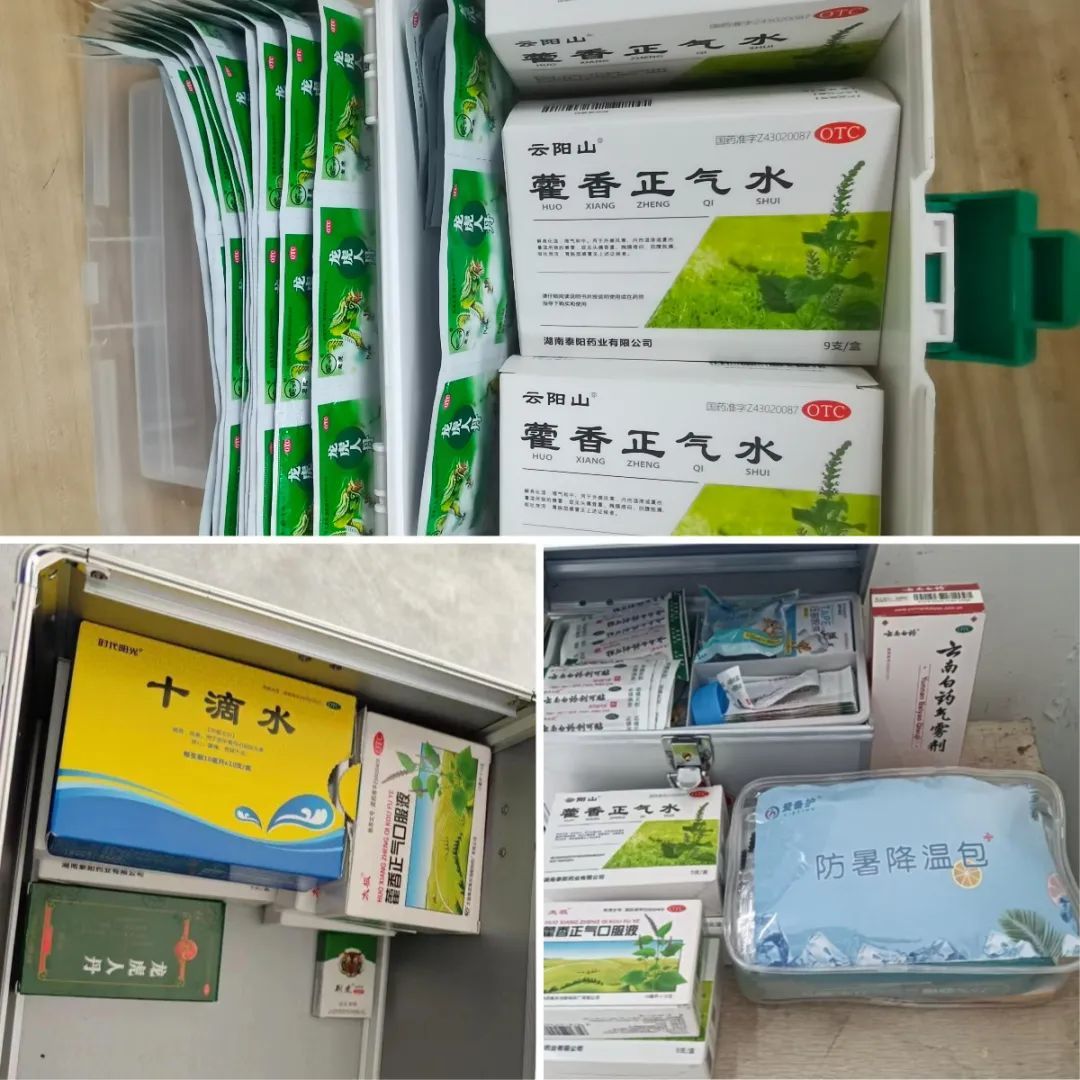 防暑降温药品是夏季必不可少的保障,一线员工都会随身携带公司发放的例如:风油精、十滴水、藿香正气水、人丹等药品。