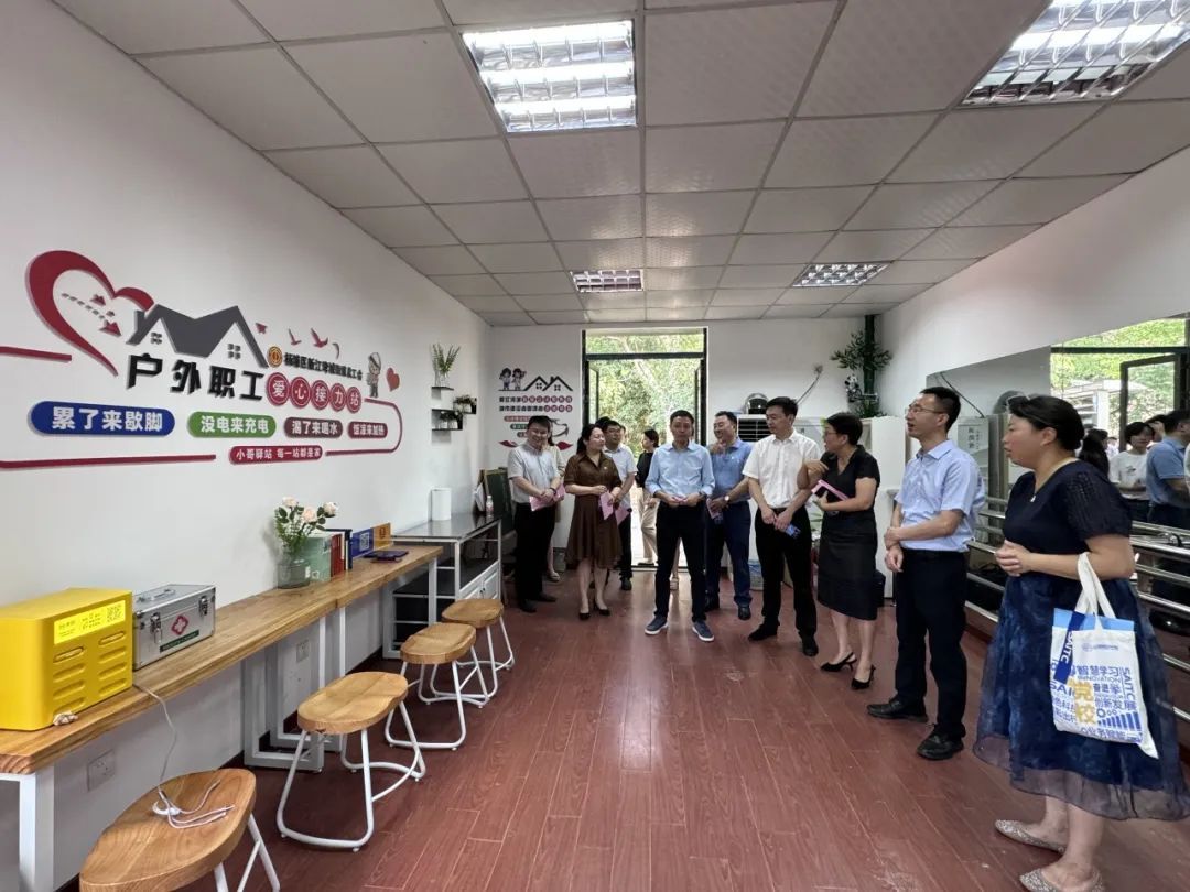 活动结束后,复洁环保总裁曲献伟及党支部书记吴岩,陪同街道相关领导来到户外职工爱心接力站参观。该服务站点立足社区,服务周边所有的户外职工,提供的物资包括饮用水、手机充电、简单医疗设施等。现场环境整洁,欢迎台卡暖意融融,向来休息的户外职工传递“爱心接力站就是家”的理念。