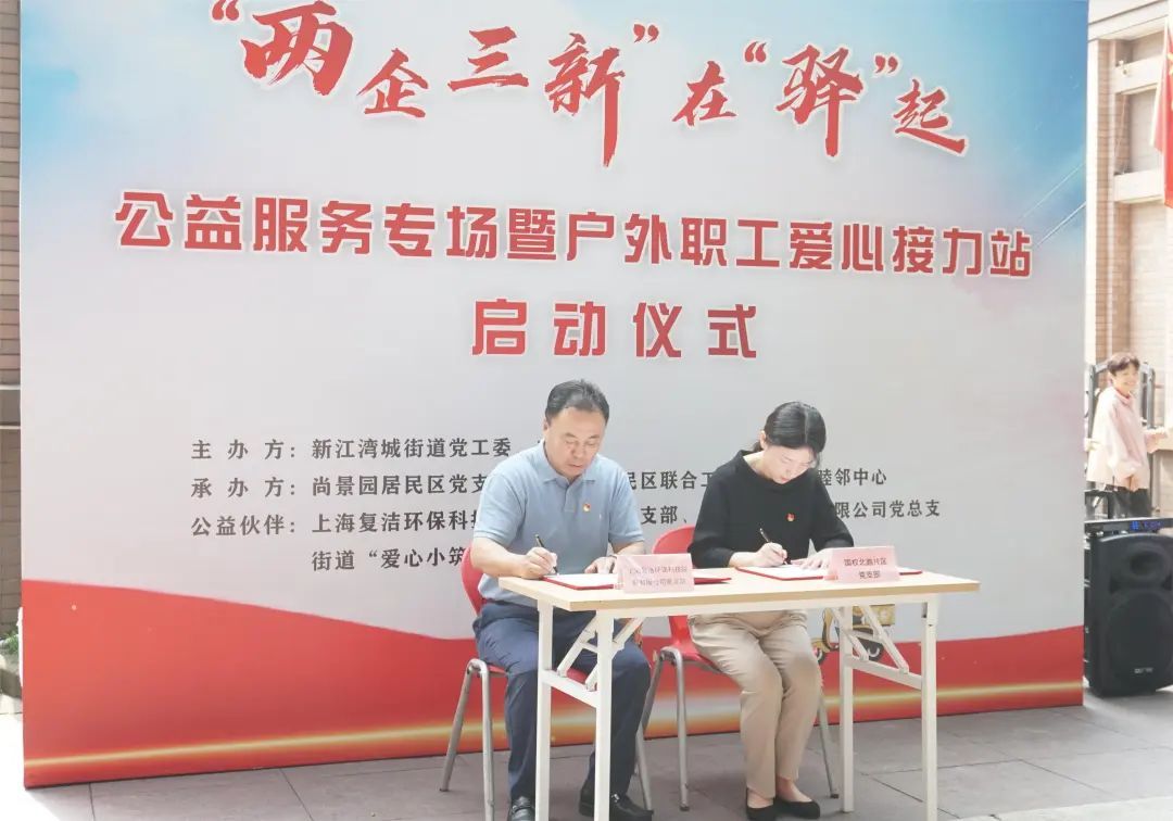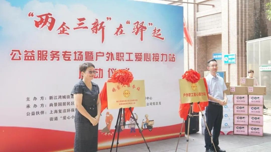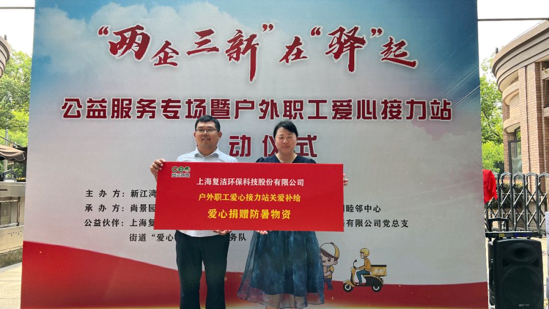 8月16日上午,上海复洁环保科技股份有限公司联合尚景园居民社区参加新江湾城街道组织的 “‘两企三新’在‘驿’起”公益服务专场活动。