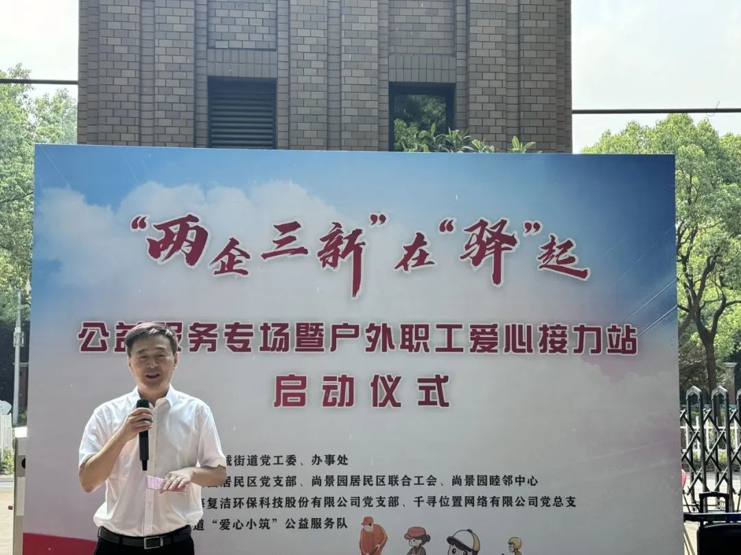 最后,进行了尚景园“户外职工爱心接力站”“娘家人服务站”揭牌仪式,并由复洁环保总裁曲献伟对本次活动进行发言。他表示活动虽将落幕,但我们的关爱与服务永不止步,复洁环保将进一步推动党建工作与企业发展同频共振、双融双促,发挥企业的优势,践行企业社会责任,共同参与社区治理。