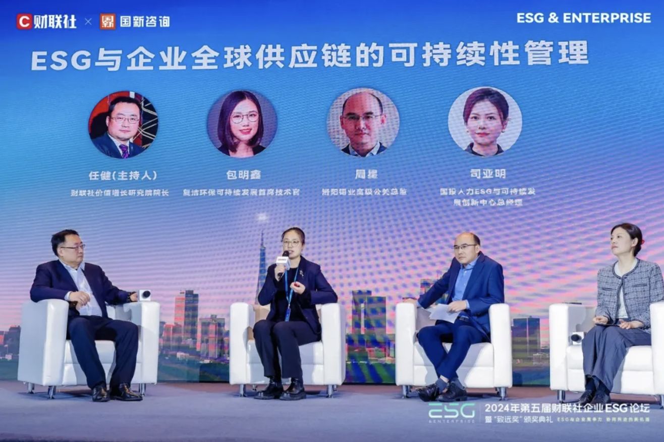 复洁环保控股子公司捷碳科技可持续发展首席技术官包明鑫女士出席了论坛,并在“ESG与企业全球供应链的可持续性管理”圆桌对话环节表示:
