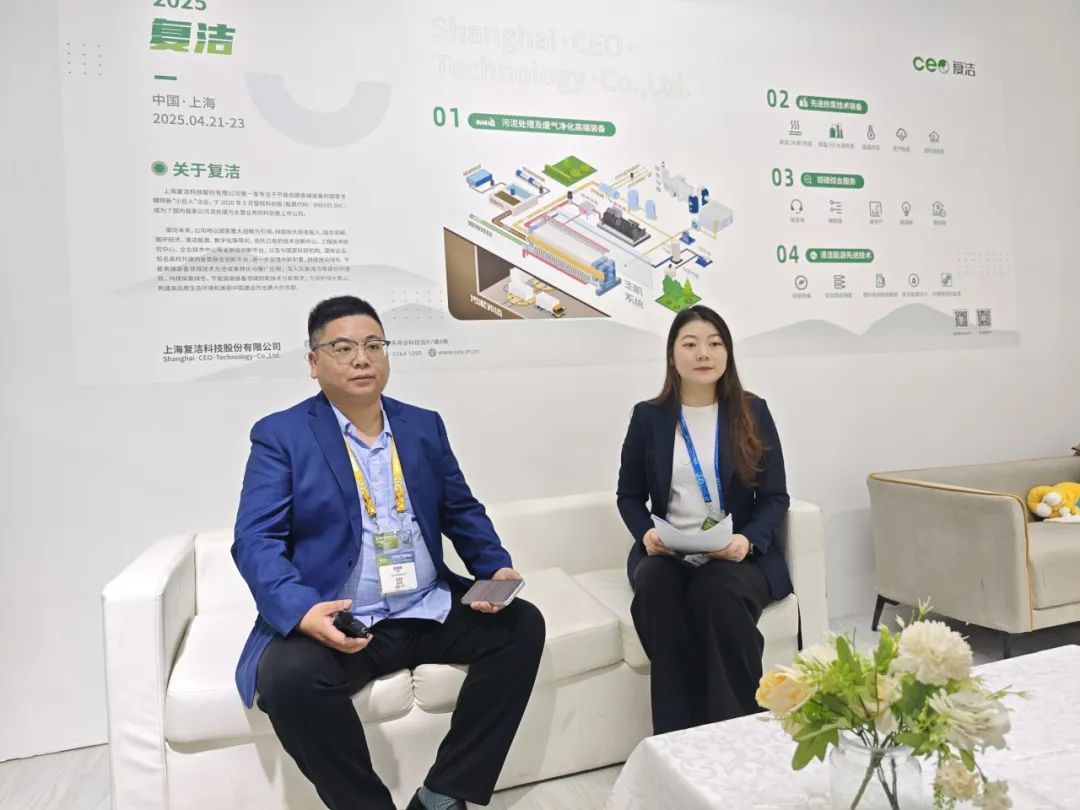 展会期间,公司董事、副总裁卢宇飞博士在“2025人工智能赋能下的污泥资源化循环利用技术论坛”上作“人工智能赋能背景下‘绿色-低碳-循环’的污泥无害化资源化创新实践”报告;公司副总裁倪明辉接受了E20环境平台专访,详细介绍了公司的核心产品和相关业务布局;捷碳科技副总经理包明鑫在“2025绿色工厂创新技术论坛”上发表了题为“解锁零碳密码——‘四步走’迈向净零未来”的主题演讲。公司在现场展位还举行了多场以污泥处理、先进热泵、清洁能源、双碳政策等主题的专题演讲,聚焦当下热点分享上海复洁的创新实践。