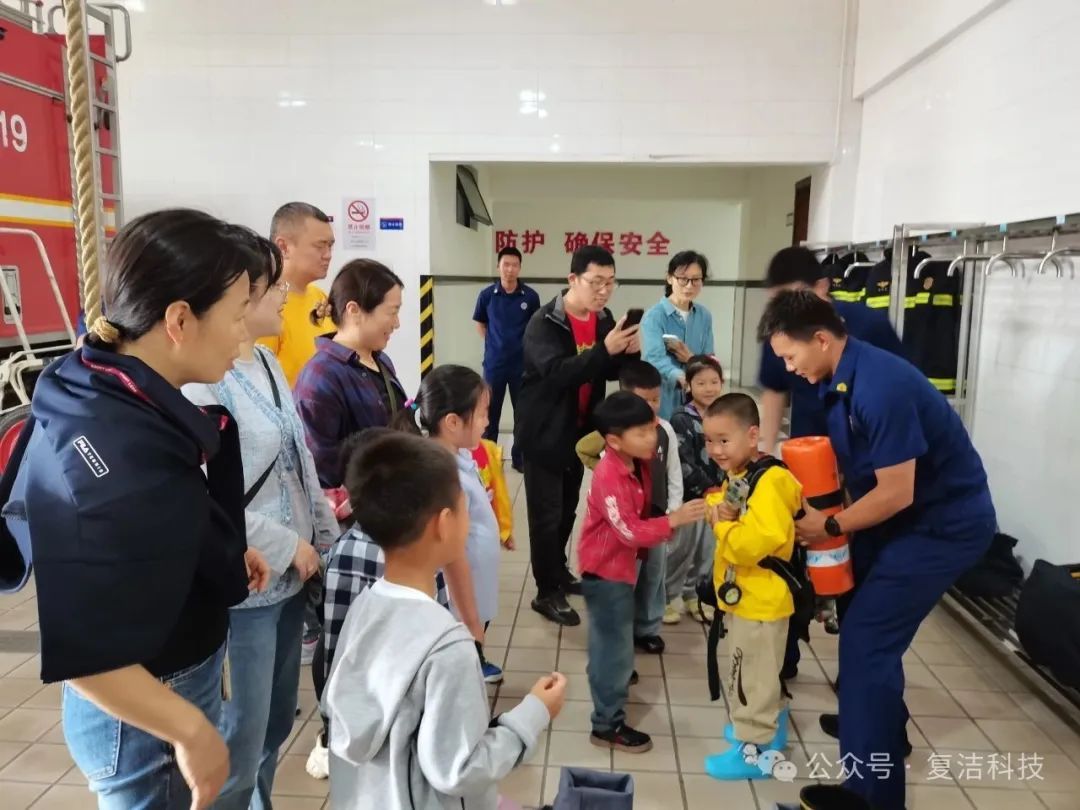 活动现场,孩子在消防员的带领下,近距离参观了各类消防车、消防装备、训练场等,消防员用通俗易懂的语言讲解了这些设备的功能和使用方法,孩子们好奇的这里摸摸、那里看看,不时的提出各种天真可爱的问题,消防员都耐心地一一解答。