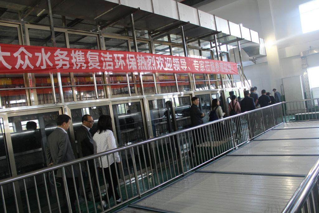会后,参会人员就复洁环保在上海大众嘉定污水处理有限公司污泥脱水干化工程的项目作了参观考察。该工程设计处理污水总规模17.5万m³/d,日产污泥量约150t/d(污泥总设计规模250t/d;含水率80%);污泥干化设备供货和安装工程选用复洁环保的“低温真空脱水干化成套技术”对污泥进行处理,将含水率96-98%的污泥一次性脱水干化至含水率30%以下,处理后的污泥总量为42.8t/d,减量70%以上。